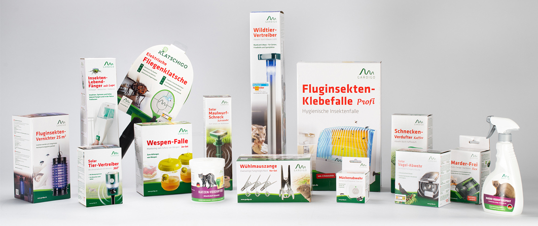 Die Produkte von Gardigo schaffen es mittels verschiedener Methoden Mücken, Hunde, Katzen, Marder, Vögel, Maulwürfe u.v.m. fern zu halten.